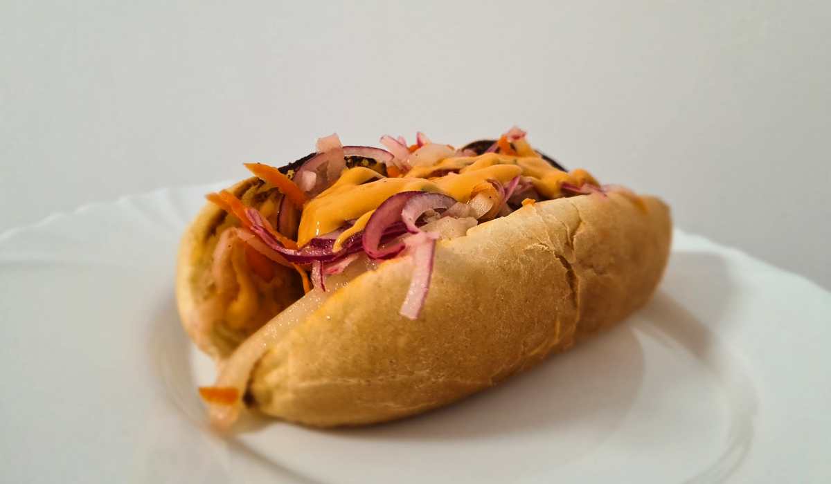 - A kiflit félbevágjuk, és mindkét oldalát megpirítjuk egy serpenyőben. A grillkolbászt szintén megsütjük, hogy minden oldala szépen megpiruljon. Ezután összeállítjuk a szendvicset: a kifli mindkét felét megkenjük szósszal, beletesszük a grillkolbászt, a tetejére rátesszük a marinált zöldségeket, majd ízlés szerint még egy kis szószt. Frissen, melegen fogyasztjuk.