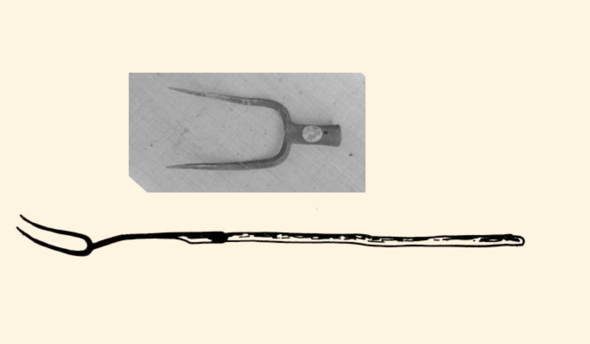 A perzselővillának nyelét fából készítették, a vége pedig kissé görbített kovácsoltvas villa volt. A villa a hentes eszköztárához tartozott a disznófogó kötéllel együtt.