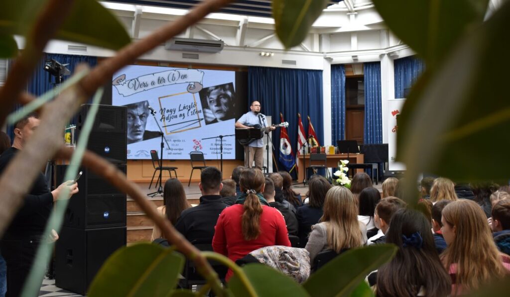 This year, more than 600 students from 27 schools gathered to fill the atrium and jointly recite May God Give (Adjon az Isten) by László Nagy, who was born 100 years ago.
