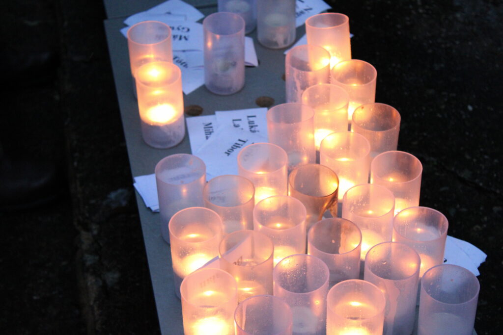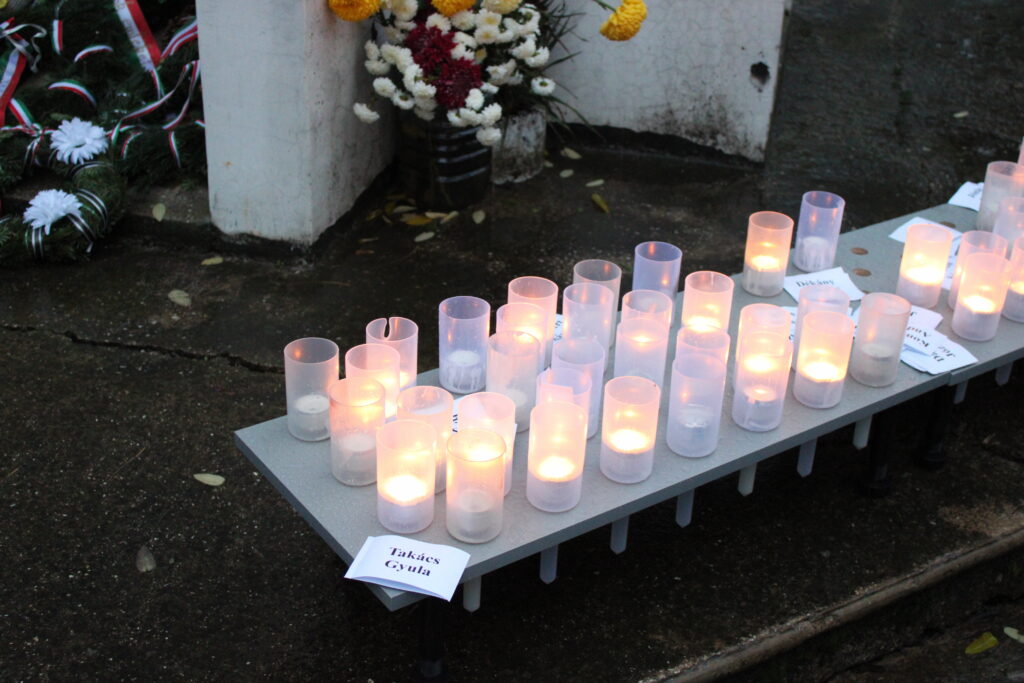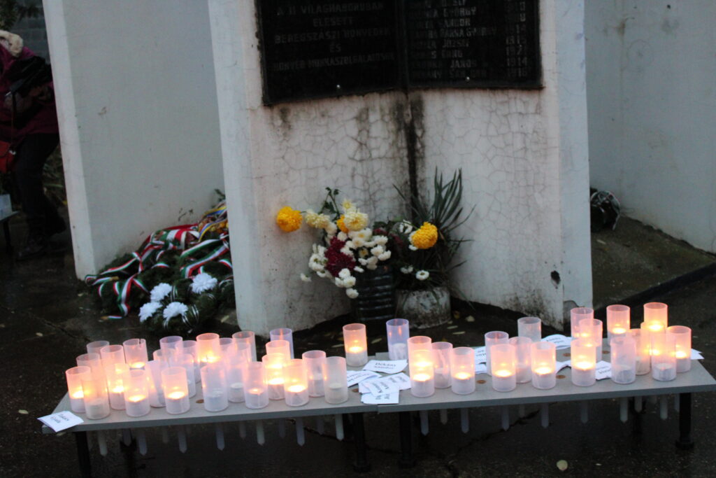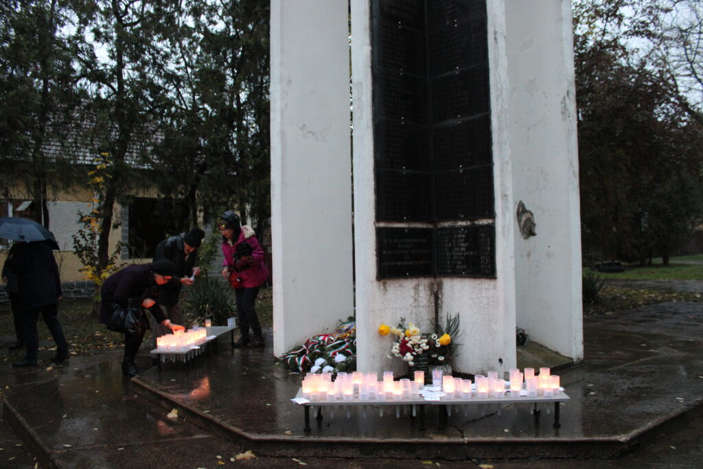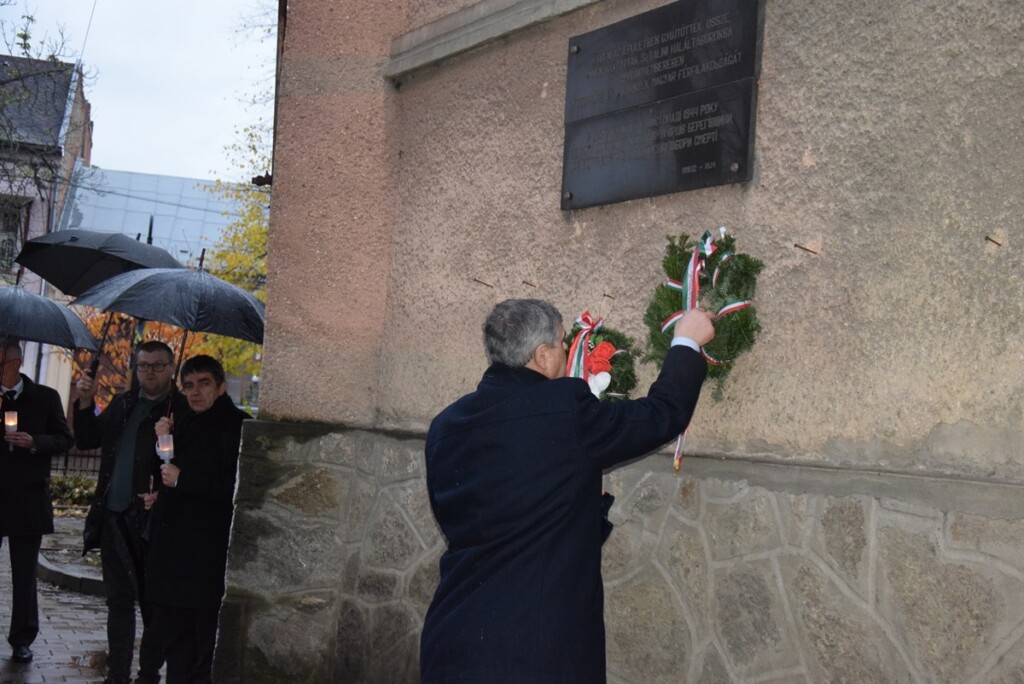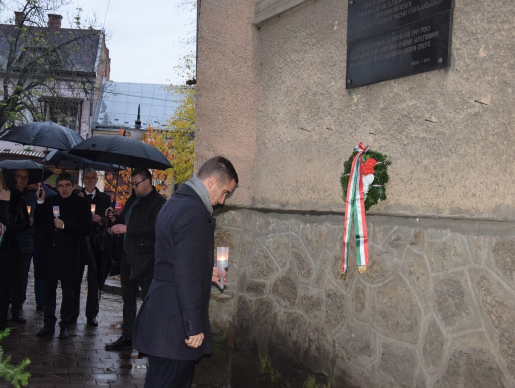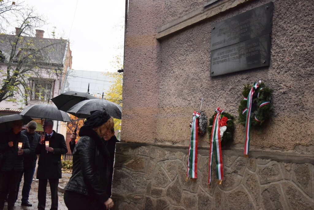 Then the participants marched through the city with candles and laid wreaths at the memorial plaque at the entrance to the Taras Shevchenko Lyceum in Berehove and at the memorial on Széna Square.