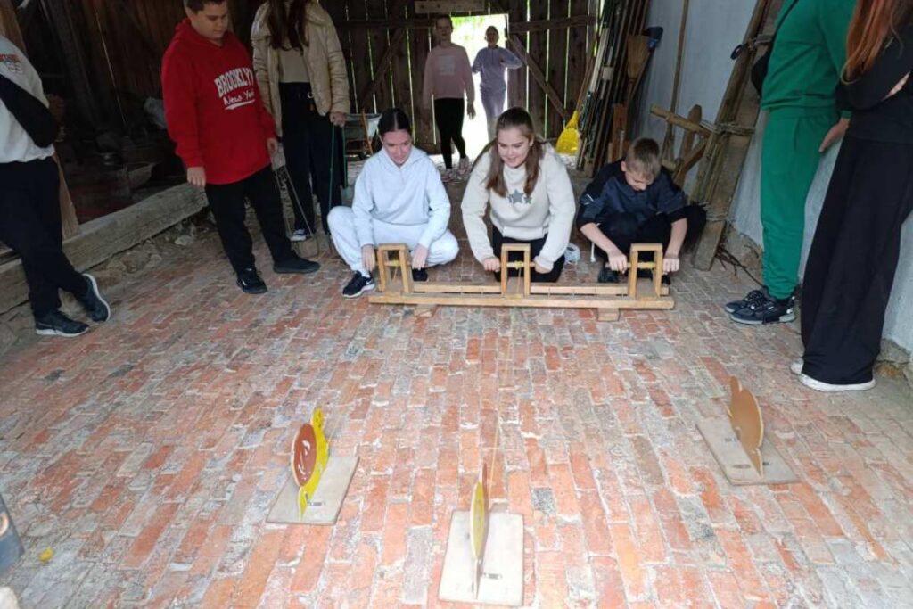 Спершу школярі взяли участь в екскурсії. Вони з цікавістю слухали інформацію про будівлю та історії про виставлені предмети. Під час прогулянки етнографічним будинком стало зрозуміло, звідки походять деякі наші вислови, наприклад: «підв’яжи шнурівку на штанях» або«глечик ходить по воду, поки не розіб’ється». Молодь обговорювала саме такі та подібні речі.