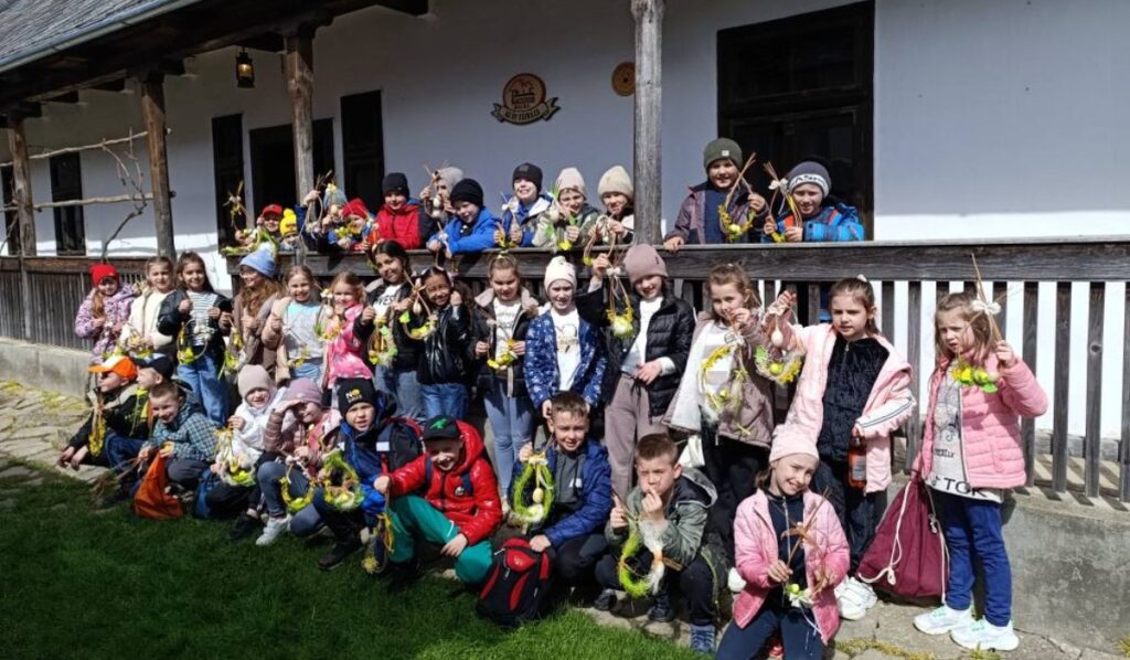 На заняття, що відбулося 9 квітня, завітали учні 2-го та 3-го класів Берегівського ліцею імені Лайоша Кошута. Загалом прибуло 34 учні. Спочатку діти взяли участь в екскурсії. Більшість групи ще не була раніше в будинку традицій, тож для них усе було новим. Діти ознайомилися з внутрішнім устроєм будинку, піччю та предметами навколо неї. Група також прогулялася Ботанічним садом імені Йожефа Сікури, де милувалися першими весняними квітами.