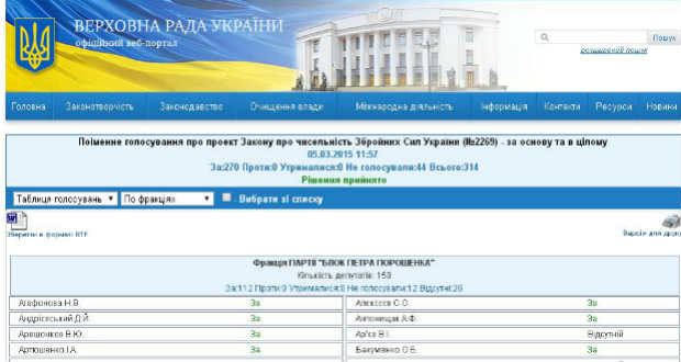 На офіційному сайті Верховної Ради України опублікували виправлений варіант результатів голосування про проект Закону про чисельність Збройних Сил України.