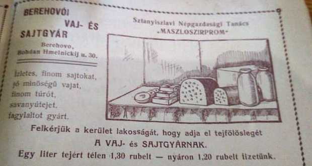 E szerint „ízletes, finom sajtokat, jó minőségű vajat, finom túrót, savanyútejet, fagylaltot” készítenek az üzemben, mely a beregszászi Bohdan Hmelnickij utca 30. szám alatt működött.