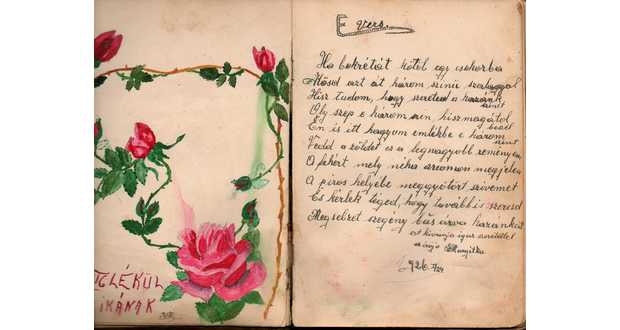 Régi képek után kutattam az interneten, amikor ráakadtam a fenti képre, melyen egy munkácsi emlékkönyv egyik lapja látható. Az Orémus Kálmán tulajdonában lévő családi örökség igazi gyöngyszem egy letűnt világból. Az 1925-ben megkezdett, s talán hosszú éveken át kézről kézre adott könyvecske számos jókívánságot, versikét, rajzot, titkos álmot rejt magában. Ma már nem divat emlékkönyvet vezetni. Nagy kár.