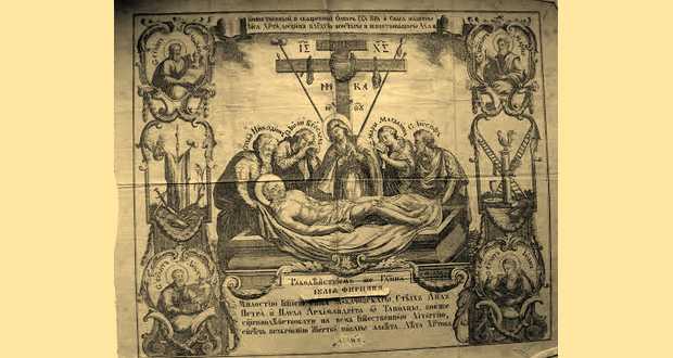 Nagyhét alkalmából erre a napra egy régi, Popovics Bazil (1796–1864) munkácsi görögkatolikus püspök által kiadott, majd Firczák Gyula (1836–1912) munkácsi görögkatolikus püspök által újraszentelt ereklyekendőt, antimenziont ábrázoló képet választottam.