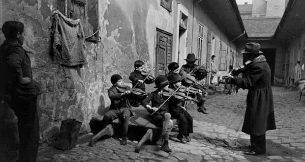 A kép Ungváron készült 1939-1940 környékén. Szinte hallani a hegedűk hangját, melyet visszavernek a sikátor falai.