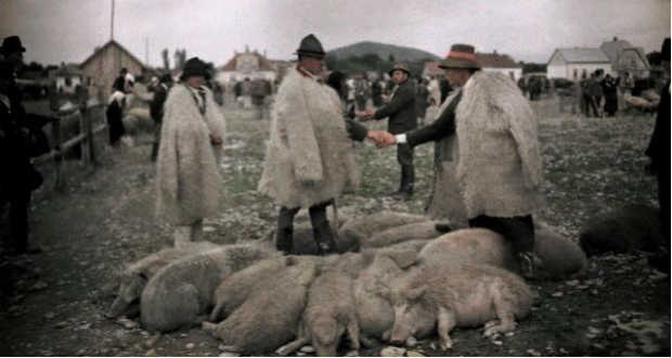 A német származású Hans Hildebrand neve ismerős lehet számunkra. A fotográfusa egyik fényképe – amelyik a munkácsi piacon készült – már szerepelt a Kárpátalja anno sorozatban. A National Geographic fényképésze 1927-ben járt Kárpátalján. Az általa készített fotók úgynevezett Lumière-autokróm-technikával készültek, melynek köszönhetően a fotós színes képek formájában örökítette meg eleink mindennapjait: a többi között a szarvasmarha- és sertésvásárokat, a városi piac kofáit, a ruténok lakóházait és portáit.