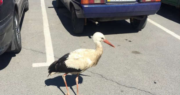 A madár állandó lakója lett az egyik ungvári bevásárlóközpont parkolójának – derül ki a közösségi oldalakon április 9-én közzétett fotókból.