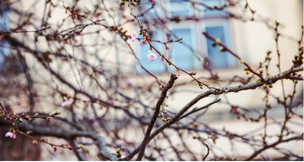 A korai meleg és az enyhe tél miatt idén sokkal korábban nyílt ki néhány virág Munkács egyik japáncseresznyefáján, a Fedorov téren.