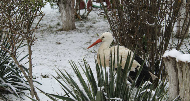 Immár második telét tölti itthon a beregszászi óvoda örökbefogadottja, Kelep Ábrahám, a fehér gólya. Sérült szárnya miatt nem tud társaival délre repülni, ezért nappal az óvoda kertjében sétálgat és várja a finom falatokat, éjszakára pedig komótosan bevonul a kazánház mellett számára kialakított fedett és meleg szalmafészekbe.