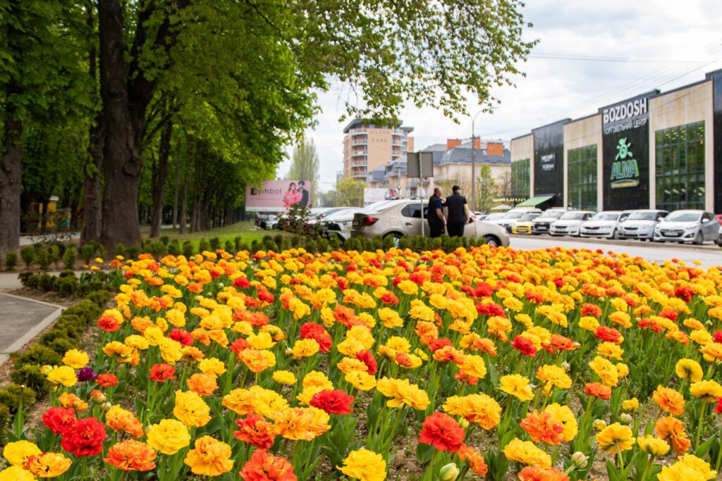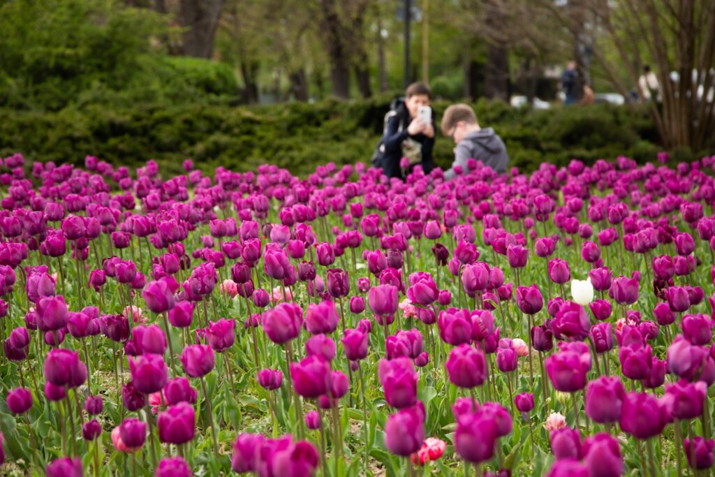 A megyeközponton a szakurák és magnóliák mellett a tulipánok is teljes pompájukban tündökölnek.
