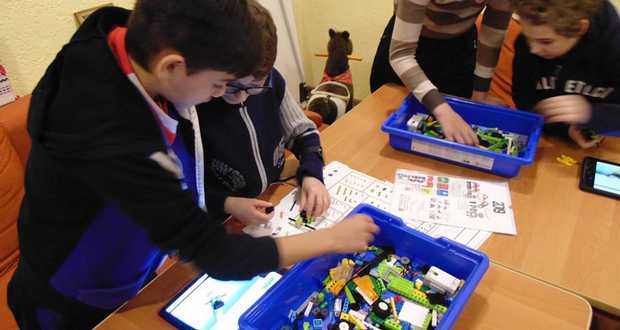 – Kettesével ültetjük le őket az asztalokhoz. A párokat rendszeresen váltjuk. A gyerekek összedolgoznak egy-egy robot felépítésénél. Minden asztalon található egy-egy okoskészülék, illetve egy-egy doboz LEGO. Általában a páros egyik tagja az alkatrészeket válogatja, a másik a robotot építi.