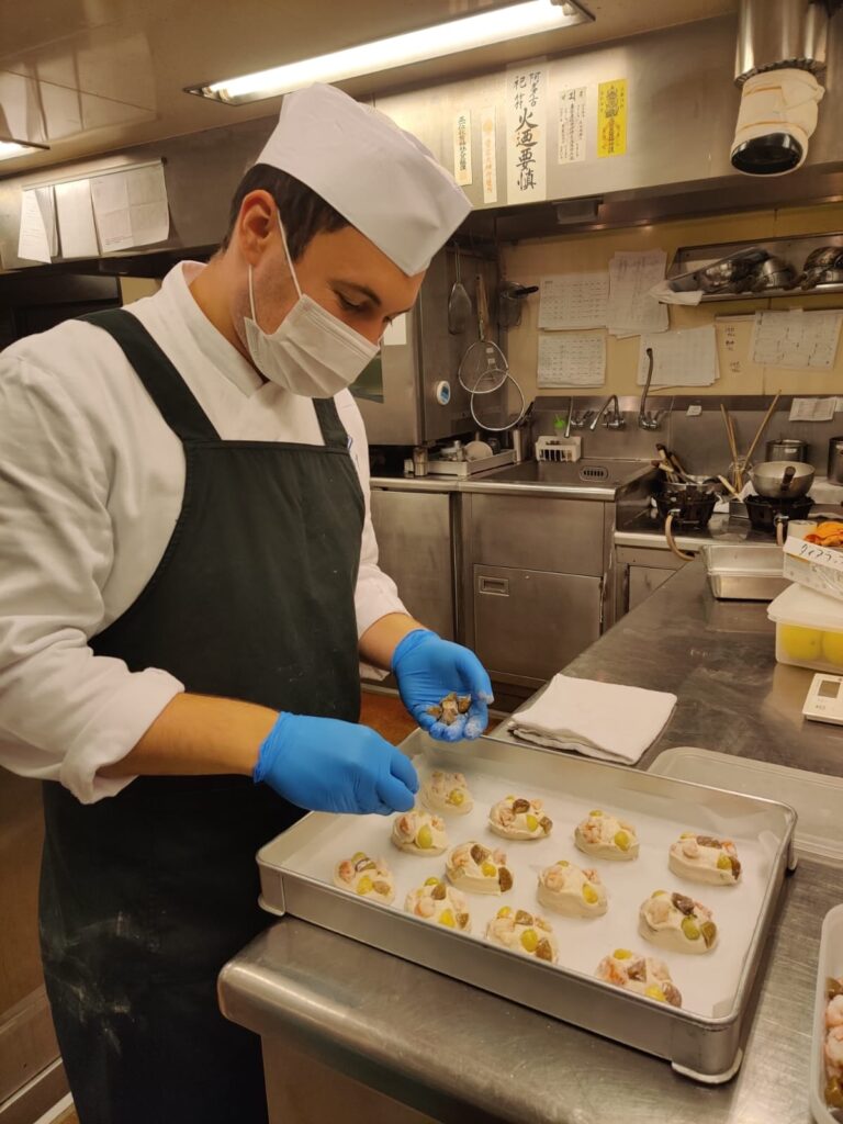 A konyhán havonta változtak a feladataim, így több területen is dolgozhattam. Kezdetben az előételek készítésével foglalkoztam, majd a főző- és gőzölő pályára kerültem, ahol mélyebben megismerhettem a japán technikákat. Az utolsó időszakban a sütőszekcióban dolgoztam, ahol a precíz hőkezelés volt a legfontosabb. Ez a rotáció lehetővé tette, hogy átfogó képet kapjak az étterem működéséről, és elsajátítsam a különböző konyhai technikákat.