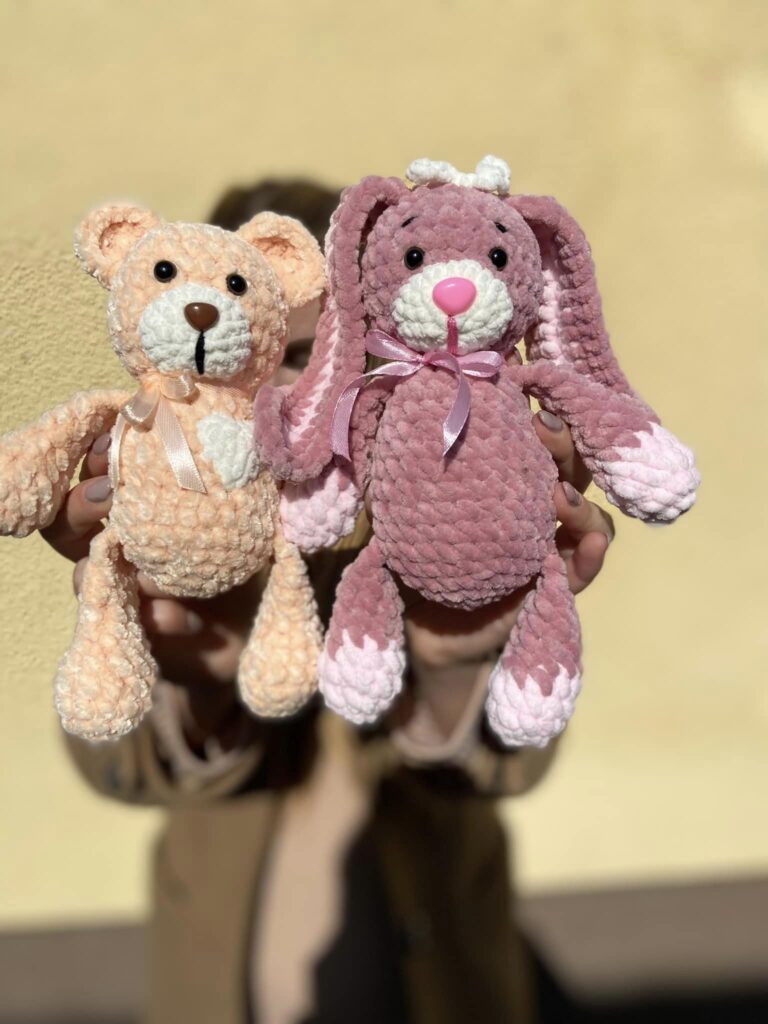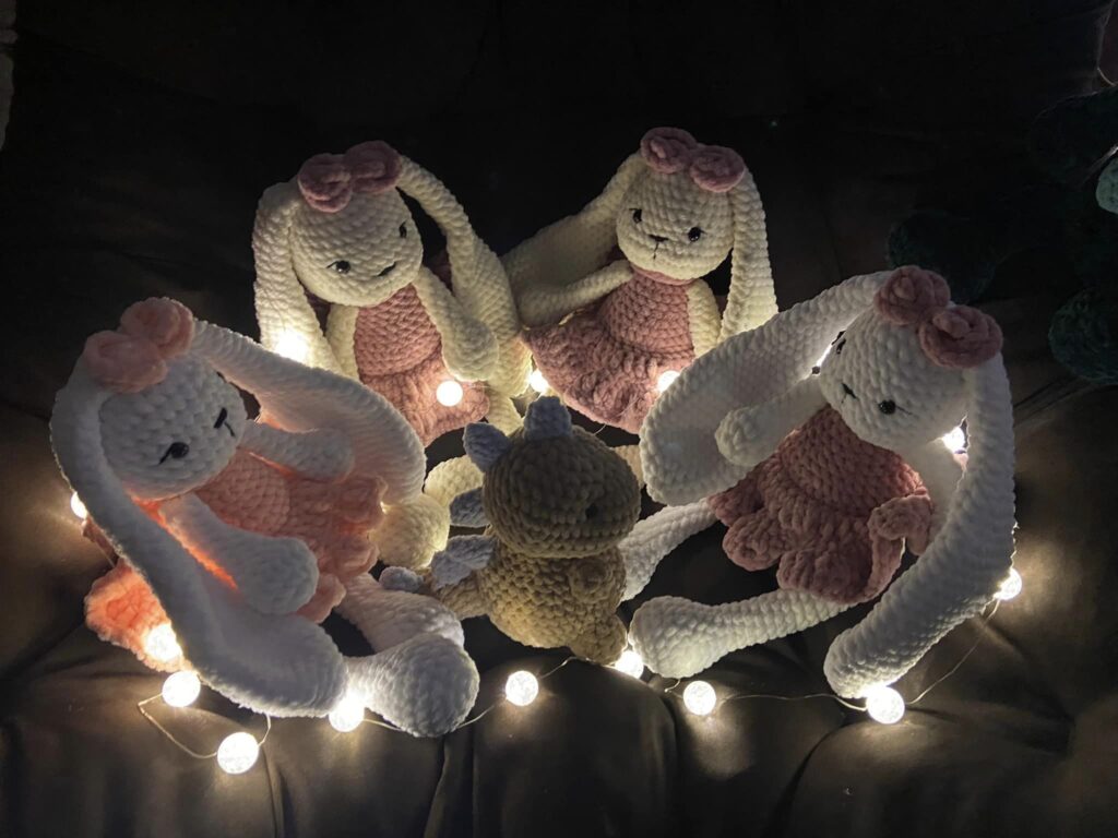 – Lányok és fiúk körében is közkedvelt a nyuszi figura. Mikulásra és húsvétra is ez volt a legkedveltebb plüss, de mai napig kérik születésnapi ajándéknak, kicsiknek és nagyoknak is. Külön kérésre horgoltam csomagokat, szetteket, ezekbe színben és formában is egymáshoz illő puhaságok kerültek. A csomagok eljutottak Hollandiába, Németországba, Magyarországra, de még Angliában is vannak Pihe-Puhák. Hálával tölt el, hogy sok-sok gyereknek csillan fel a szeme a plüssök láttán, ez a legnagyobb motivációm jelenleg is.