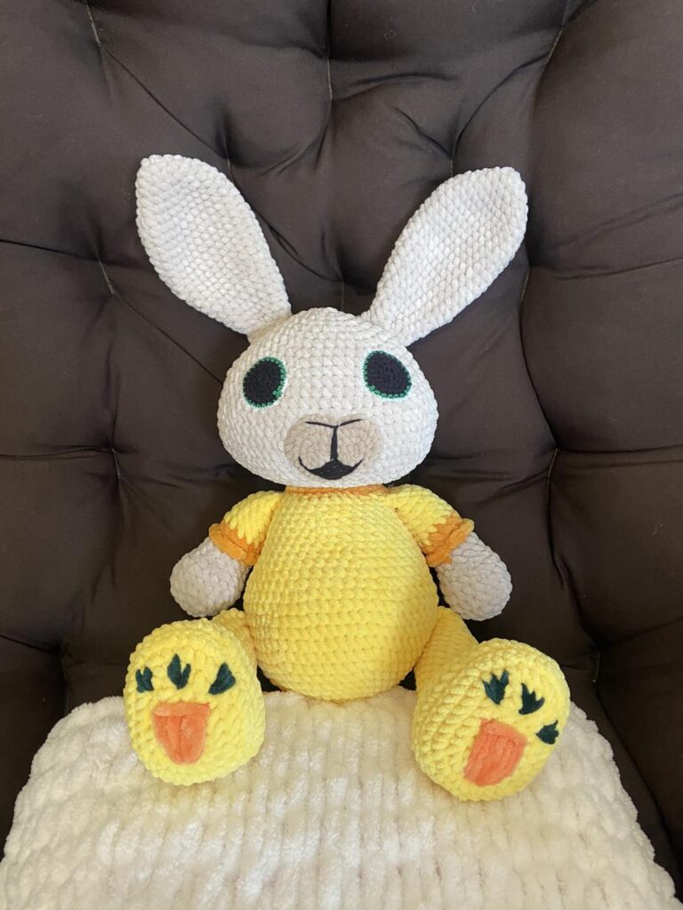 – Ez teljesen változó, attól függően milyen apróság készül. A főállásom mellett sajnos csak az esti órákban és hétvégén tudok alkotni. Egy 35-40 cm-es nyuszi két hosszú este alatt készül el, egy 120*120 cm-es takaró már hosszabb folyamat, 3-4 este kell a megvalósításához. A rekord időm talán Mikulás előtt volt, amikor nagy mennyiségben kellett elkészítenem viszonylag rövid idő alatt horgolt nyuszikat. Egy nap alatt kettő készült el, szinte megállás nélkül dolgoztam rajta.