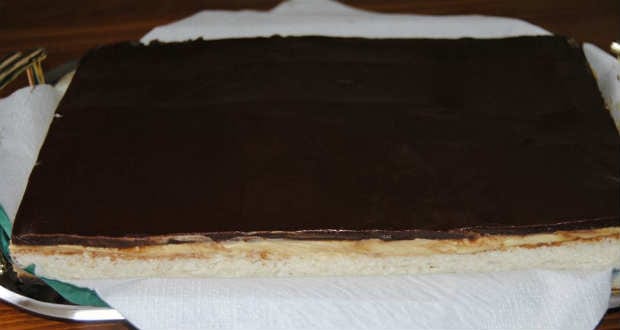 Amikor a sütemény kihűlt, a tetejére rákenjük a krémet, s végül a megolvadt és simára kevert glazúrt.