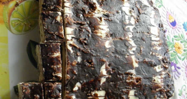 A tetejére a csokoládékat felolvasztjuk és bevonjuk vele a süteményt.
