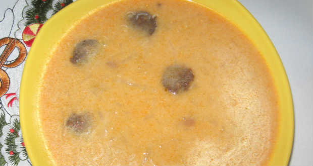 A tejfölt egy lábasba rakjuk, rámerünk 3 merőkanál levest, alaposan elkavarjuk, majd visszaöntjük a fazékba a többi leveshez.