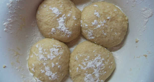 Ezt jól összegyúrjuk, és négy cipóba szakítva 1 órán át pihentetjük.