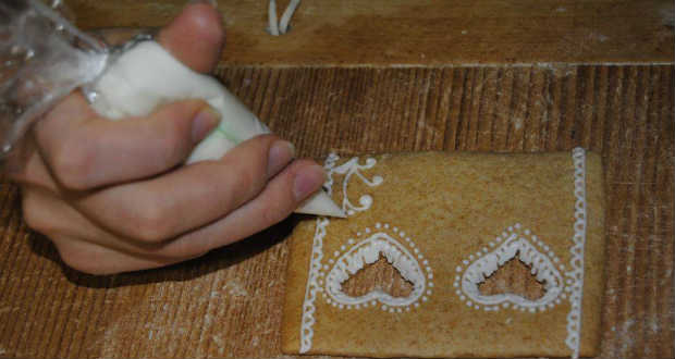 Ezt habnyomó zsákokba töltjük és díszítjük a mézeskalácsokat.