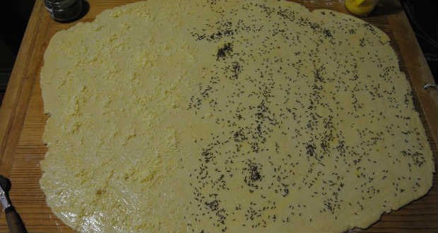 Körülbelül fél centiméter vastagra nyújtjuk.