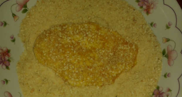 A zsemlemorzsához hozzáadjuk a szezámmagot.