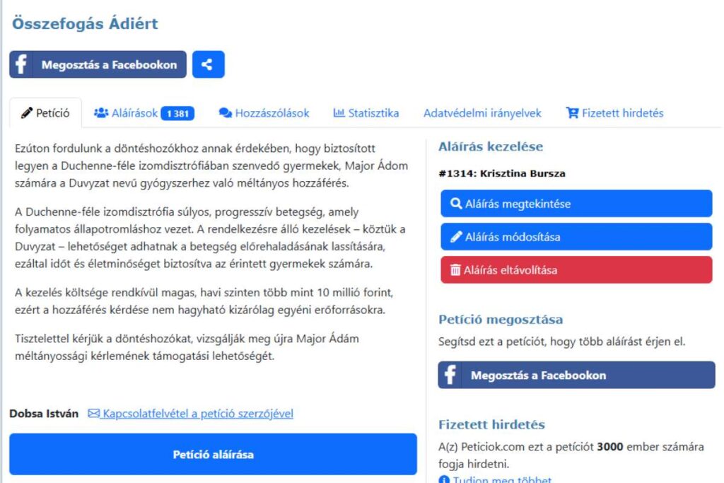 A kezdeményezők arra kérnek mindenkit, hogy aláírásával támogassa Ádám ügyét.