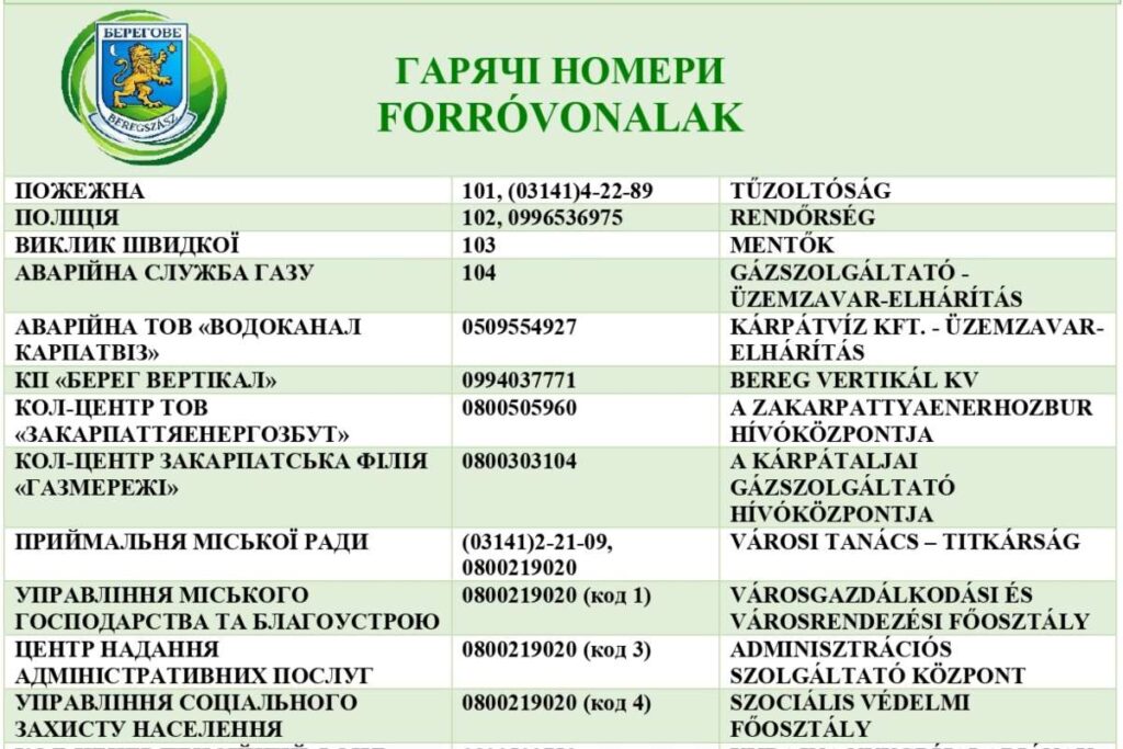 Fontos telefonszámokat tett közzé a Beregszászi Városi Tanács